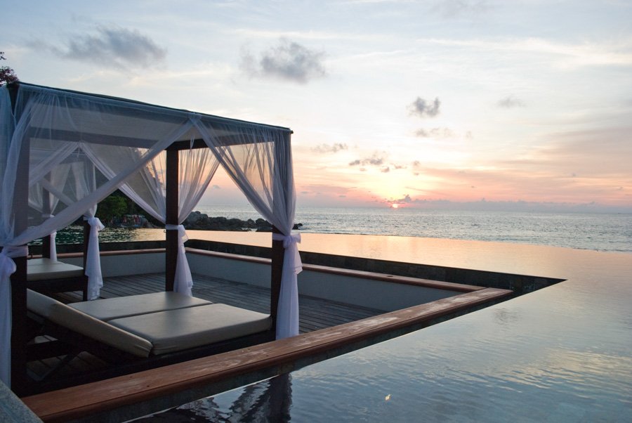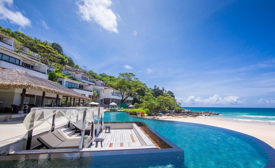 Das Highlight der Anlage ist bestimmt der achteckige mit schwarzen Fliesen ausgekleidete Pool. Ein Bonus ist zusätzlich, dass der Strand für Phuket vergleichsweise privat ist. Er ist von aussen nicht so einfach zugänglich. Direkt am Strand gibt es auch eine Beach Bar für leckere Erfrischungen.