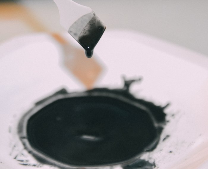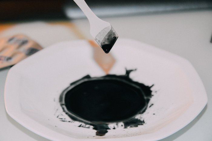 Öffne die Kapseln und schütte die Aktivkohle auf einen kleinen Teller. Füge einen Teelöffel flüssiges Kokosöl hinzu und rühre die Mischung gut um bis eine homogene Masse entsteht. Wenn man möchte kann man an diesem Punkt auch etwas Soda hinzufügen.