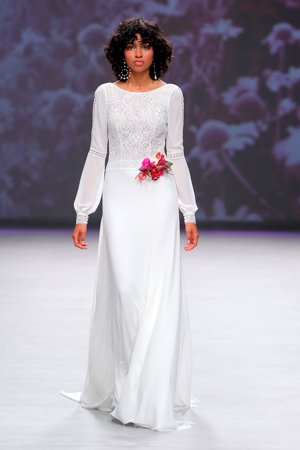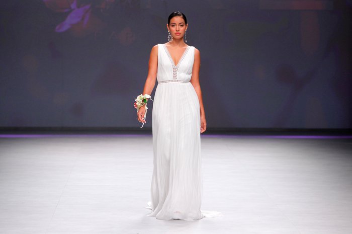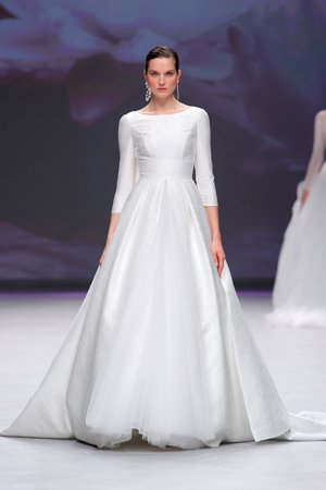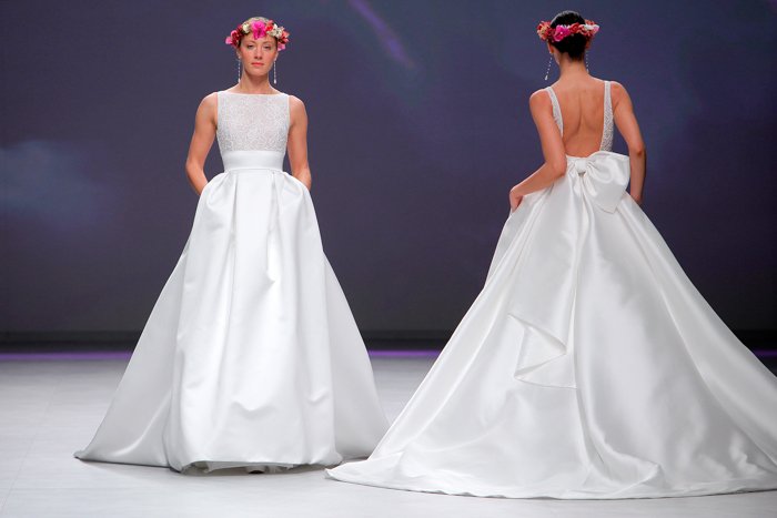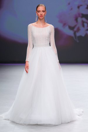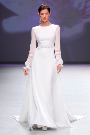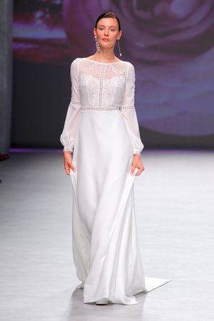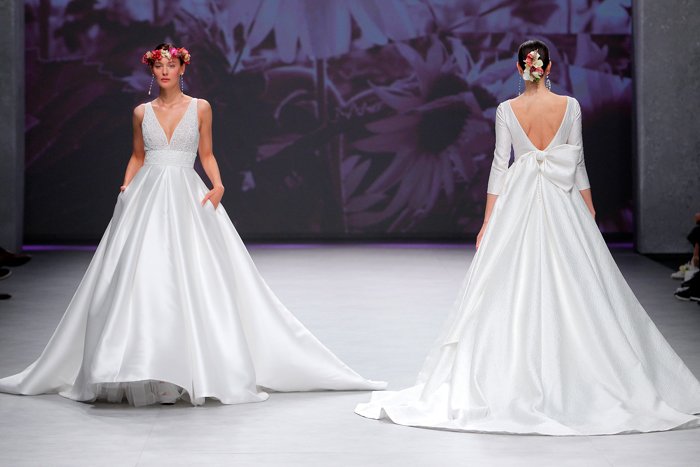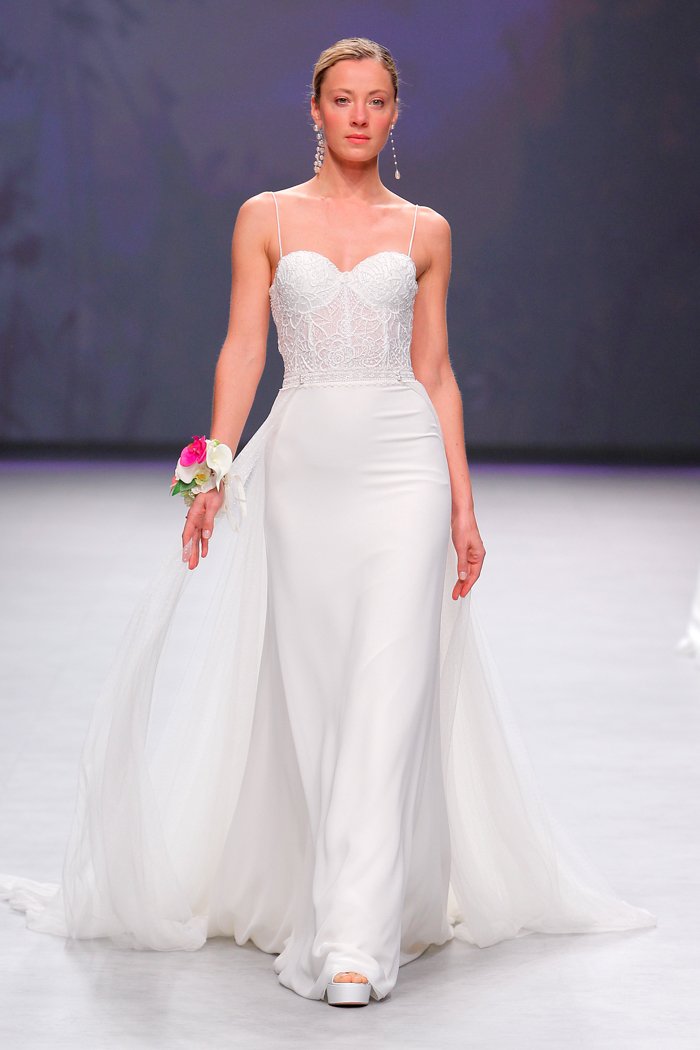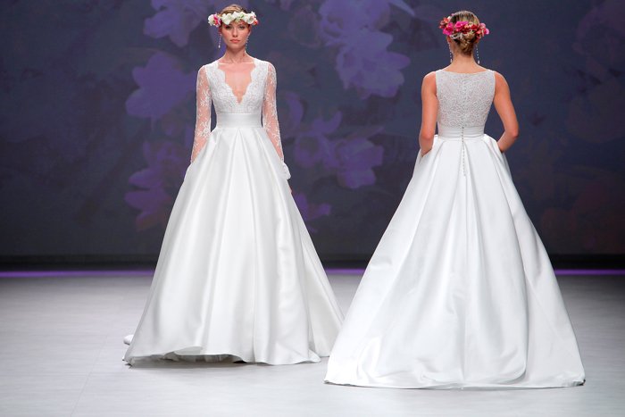 Ganz wenige fülligere Roben kommen in der Aire Brautkollektion 2020 vor. Das entspricht dem jetztigen Bridal Trend. Bis auf die Milano Bridal Week konnte man kaum Prinzessinnenkleider entdecken.