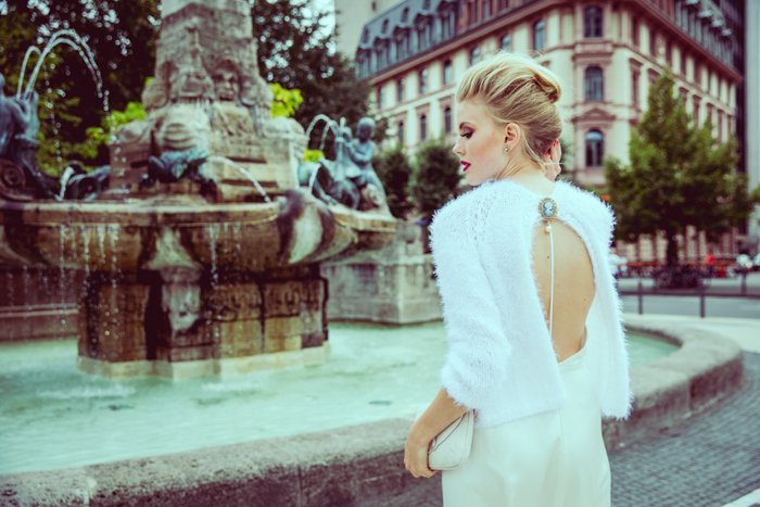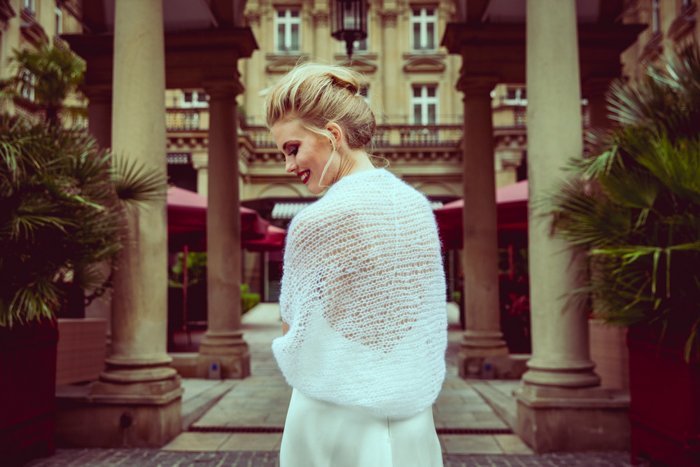 In Kürze kommt die gesamte Kollektion übrigens in dunklen Farben heraus (schwarz, anthrazit, nachtblau), denn man muss keine Braut sein, um ein Accessoire von marryandbride zu tragen. Auch Gäste oder Brautjungfern können passend zum Outfit bestrickt werden. Ebenso gibt es zum Abend-/Cocktail-/Ausgehoutfit das selbe „Problem“: rückenfreie, schulterfreie Kleider und selten etwas „cooles“ für obendrüber.
