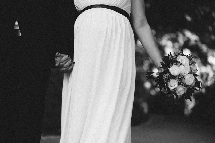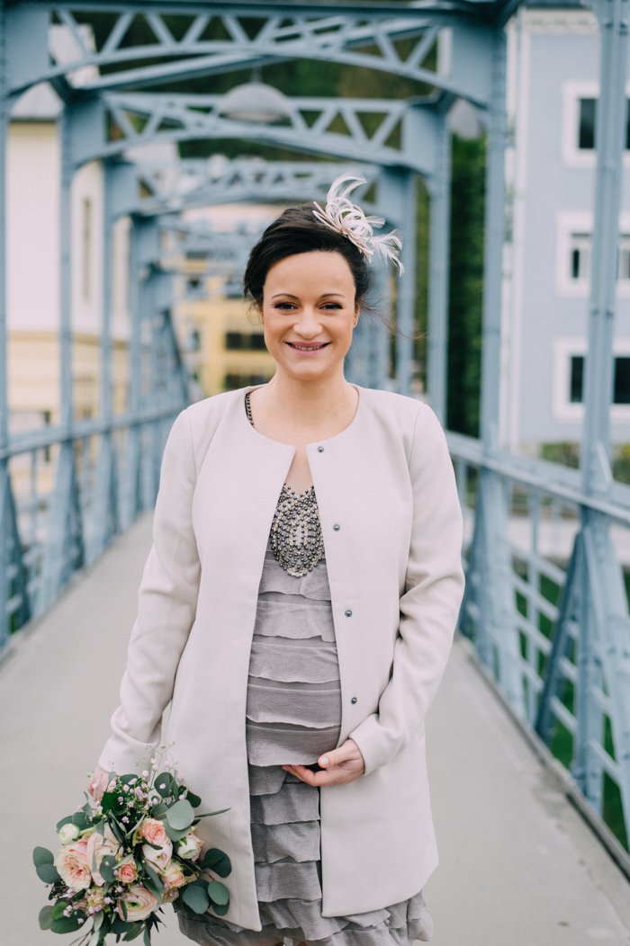 Auch als Schwangere muss man natürlich nicht auf ein hübsches Kleid verzichten. Viele Standardmodelle lassen sich auf Babybäuche anpassen, euer Brautmodengeschäft berät euch gern. Kleiner Tipp: Der Umstandsmodenladen „Las Perlitas“ in Zürich hat eine grosse Auswahl an Umstandsbrautkleidern und passenden Schuhen. Apropos Schuhe: Es gibt Schwangere, die bis kurz vor dem Entbindungstermin in Stilettos herumhüpfen (mein Neid ist euch sicher, ich war eher die Fraktion Birkenstock), aber ein bequemes, flaches Paar Schuhe in Petto zu haben, ist sicher nicht verkehrt.