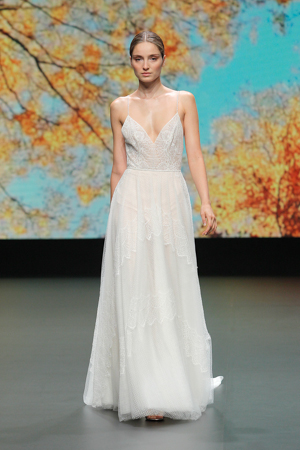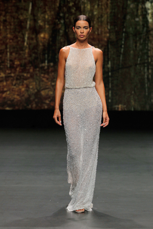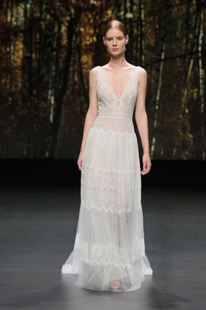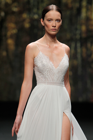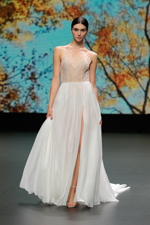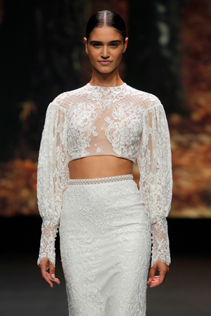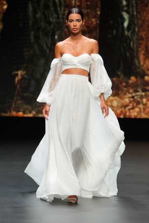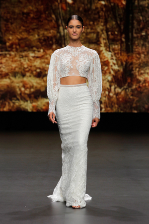 Leichte Stoffe, zarte Linien, Glitzer Transparenzen, Crop Tops und off shoulder sind so ein paar meiner Highlights dieser Brautkollektion.