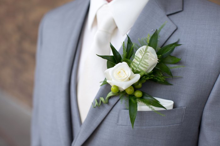 Farblich auf den Strauß der Braut abgestimmt ist der Anstecker in Form eines kleinen Blütenbouquets ein wahrer Hingucker. Der Bräutigam trägt diesen sog. Boutonniére am Revers auf der linken Seite. Auch männliche Familienmitglieder sowie der Trauzeuge bekommen eine kleinere Variante des Ansteckers: Statt eines Straußes eine einzelne Blüte mit etwas Grün.