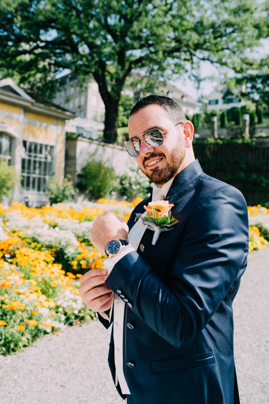 Der Bräutigam hat nicht so viele Möglichkeiten sich „zu schmücken“ wie die Braut. So legen sehr viele grossen Wert auf eine schöne Uhr. Ob ein Familienerbstück oder ein Geschenk der zukünftigen Gattin oder das Lieblingsstück seit eh und je ist egal. Uhren sind fotogen und wer eine hat, einfach zum Shooting mitbringen. Dasselbe gilt für Sonnenbrillen!
