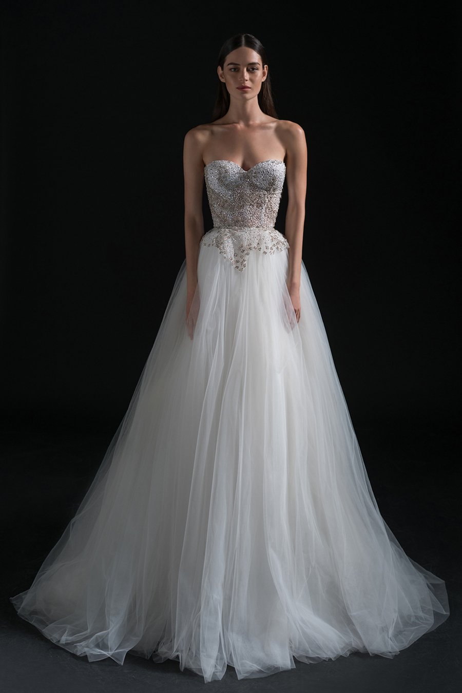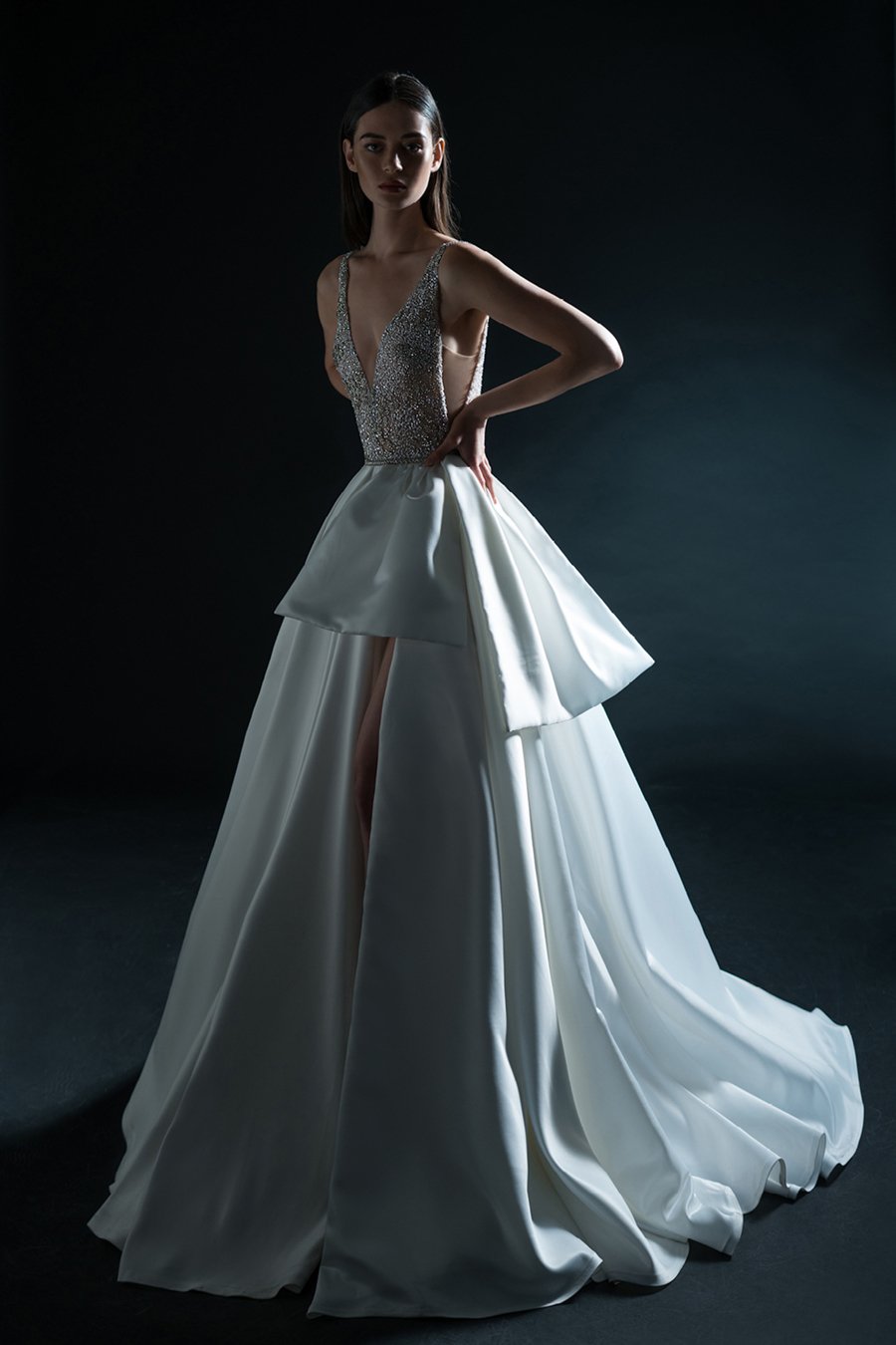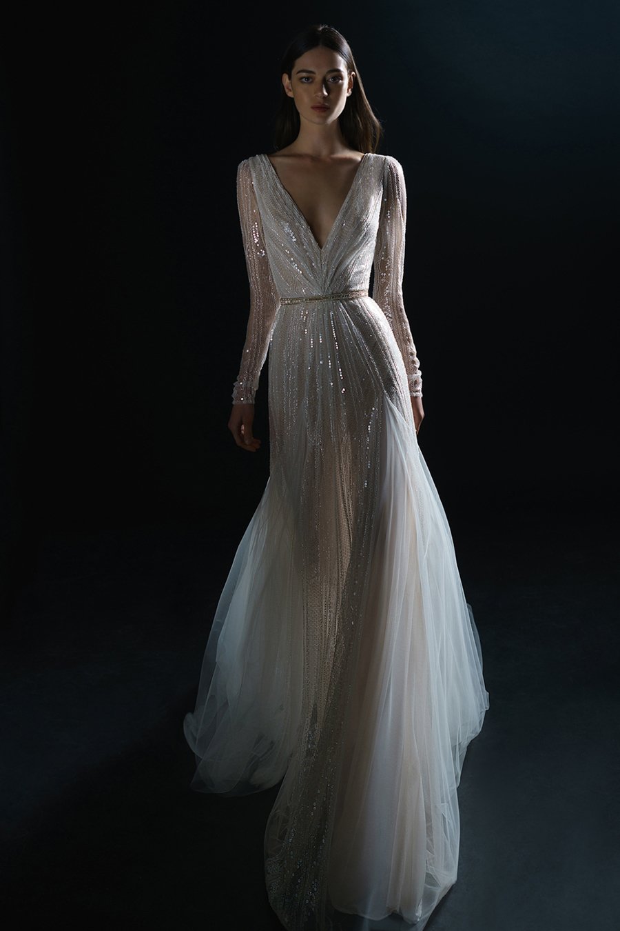 Von glitzernden Materialien bis hin zu gewagten Dekoltées und Rückenausschnitten, die Brautkleider Inbal Dror 2019 sind gemacht für einen fulminanten Auftritt.