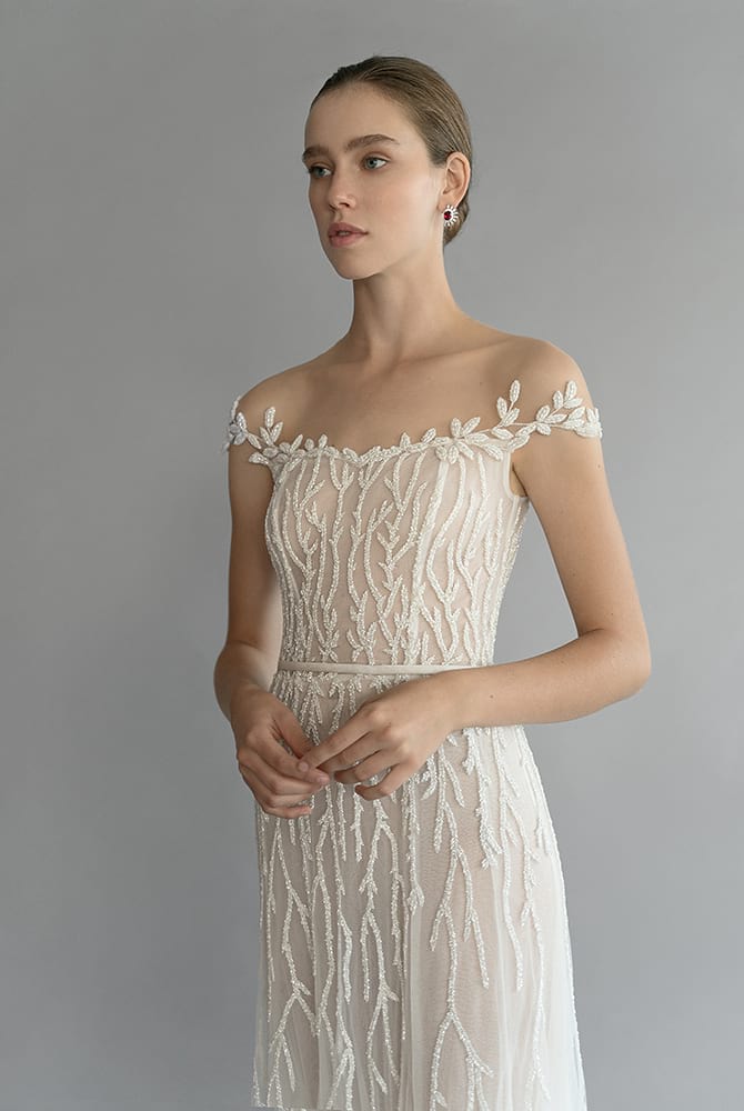 Der Materialmix und die unvergleichliche Liebe zum Detail lassen diese Brautkleider aus der Masse hervorstechen. Schaut doch nur mal die kunstvollen Verzierungen und Stickereien an. Toll, oder?