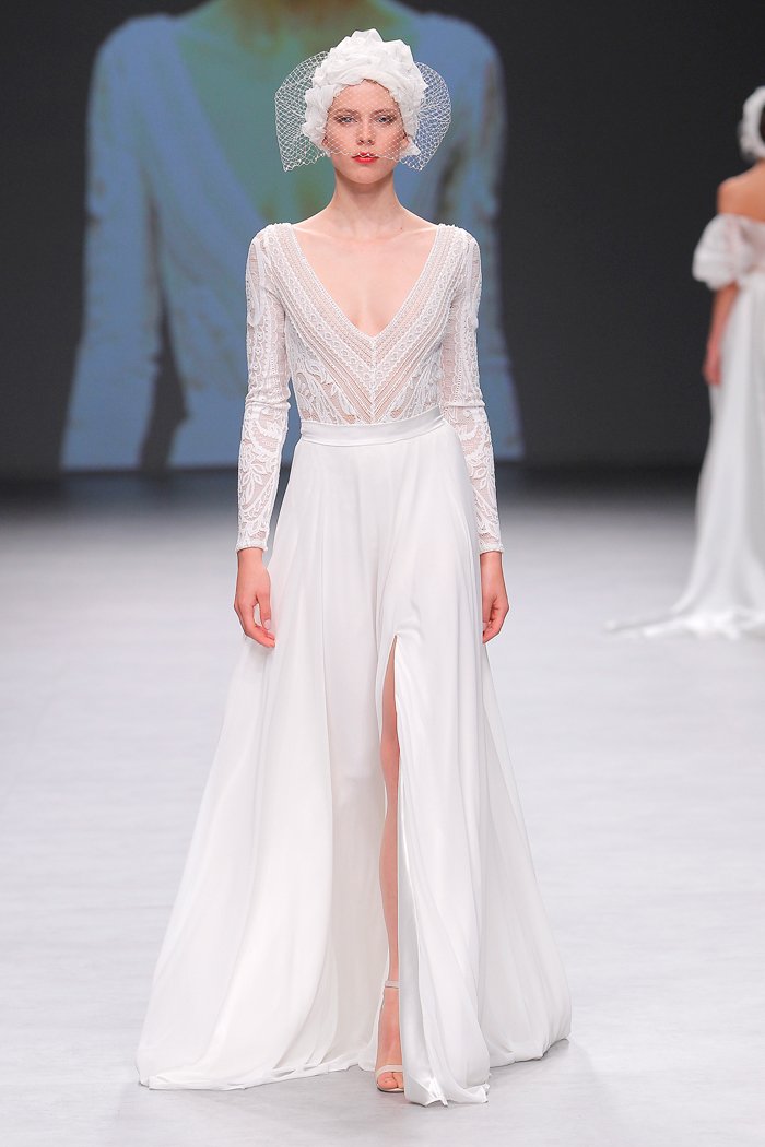 Der Rest der Brautkleider ist mit langen Ärmeln. Ich kann es nicht oft genug betonen aber das ist DER Trend par excellence für 2020. Seid froh, wenn ihr nächstes Jahr überhaupt ein Kleid ohne Ärmel bekommt. Ich hätte mir wirklich nicht gedacht, dass sich das so stark durch alle Kollektionen durch zieht. Wirklich jede Show hat langärmlige Kleider im Sortiment. Das wird noch eine spannende Saison.