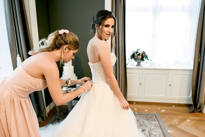 Das kommt schon mal vor und deshalb liebe Hochzeitsfotografen und liebe Bräute überlegt euch, ob ihr ein sogenanntes Getting Ready Fotoshooting nicht einfach vor der Hochzeit in Ruhe machen wollt. Nehmt eure beste Freundin oder eure Bridesmaids mit und macht euch einen schönen Tag zusammen so wie es Braut Cele und ihre Freundin Natascha gemacht haben. Mit Makeup Styling, Kuchen und Prosecco.