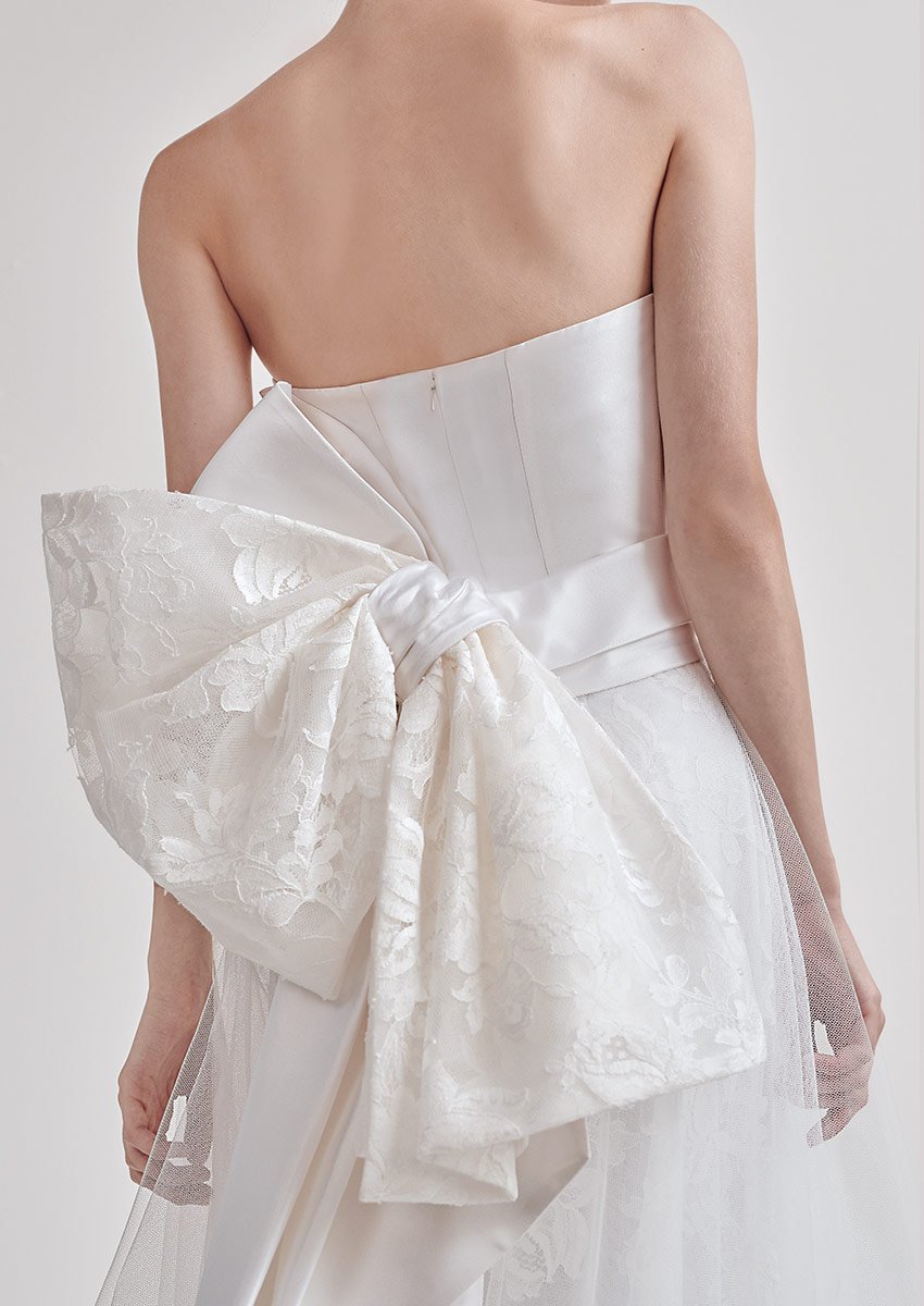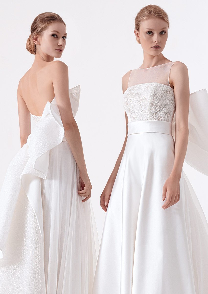 Der Traum der Marke ist ehrgeizig: Die Erwartungen jeder Braut zu erfüllen, alle ihre Wünsche in einem Kleid zu verkörpern und ihre Silhouette zu interpretieren, um sowohl den Körper als auch die Persönlichkeit zu erheben.