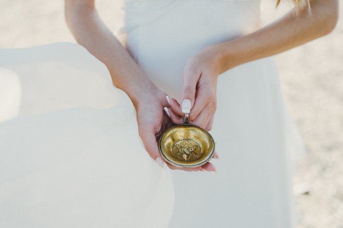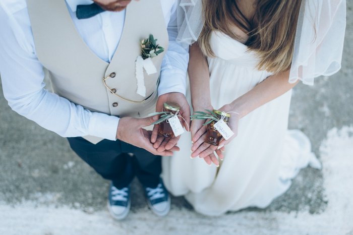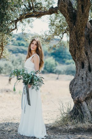 Für 2 Tage Shooting gibt es natürlich 2 Brautkleider. Das liess sich die Braut nicht nehmen. Das wunderschöne Kleid stammt von Elfenkleid in München und ist ein Traum aus cremefärbiger Seide. Mit einem Eukalyptusstrauss ist der duftig leichte Brautlook auch schon fertig.