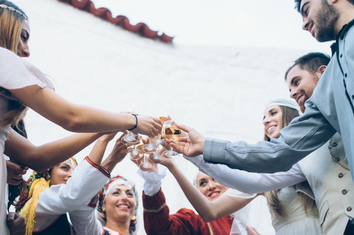 Zu einer griechisch-deutschen Hochzeitsfeier gehört Tanz und Wein und davon gab’s in Hülle und Fülle.