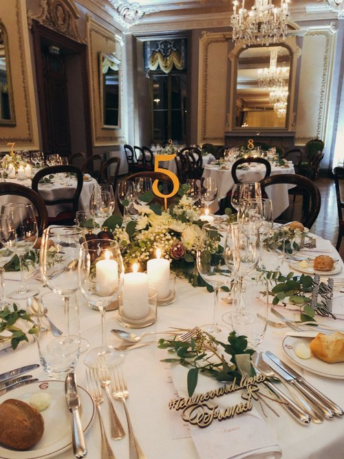 Stehtischdekoration sowie Blumendekoratio auf dem Tisch