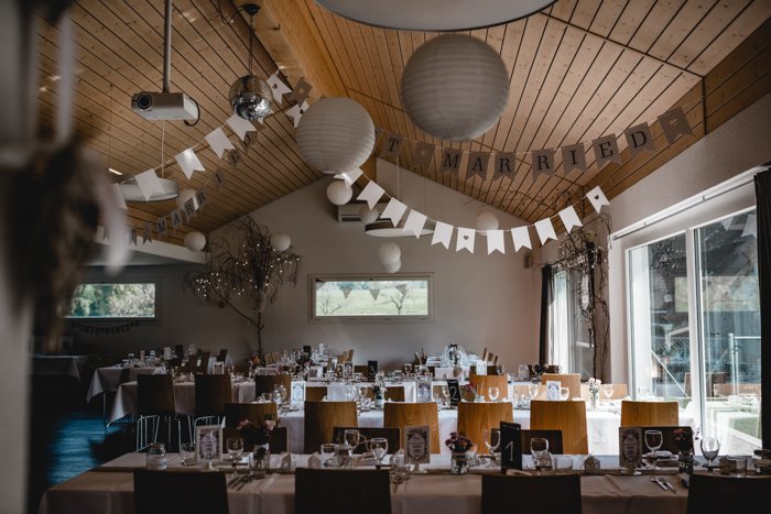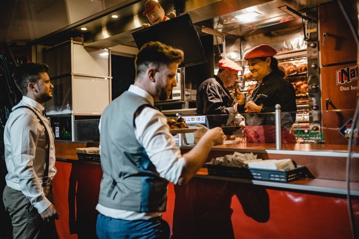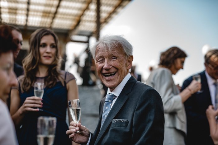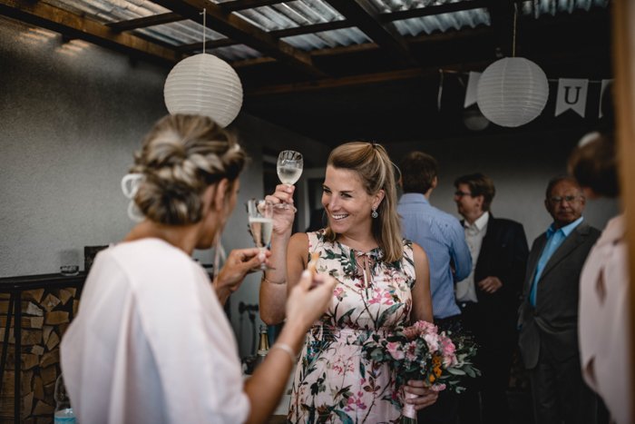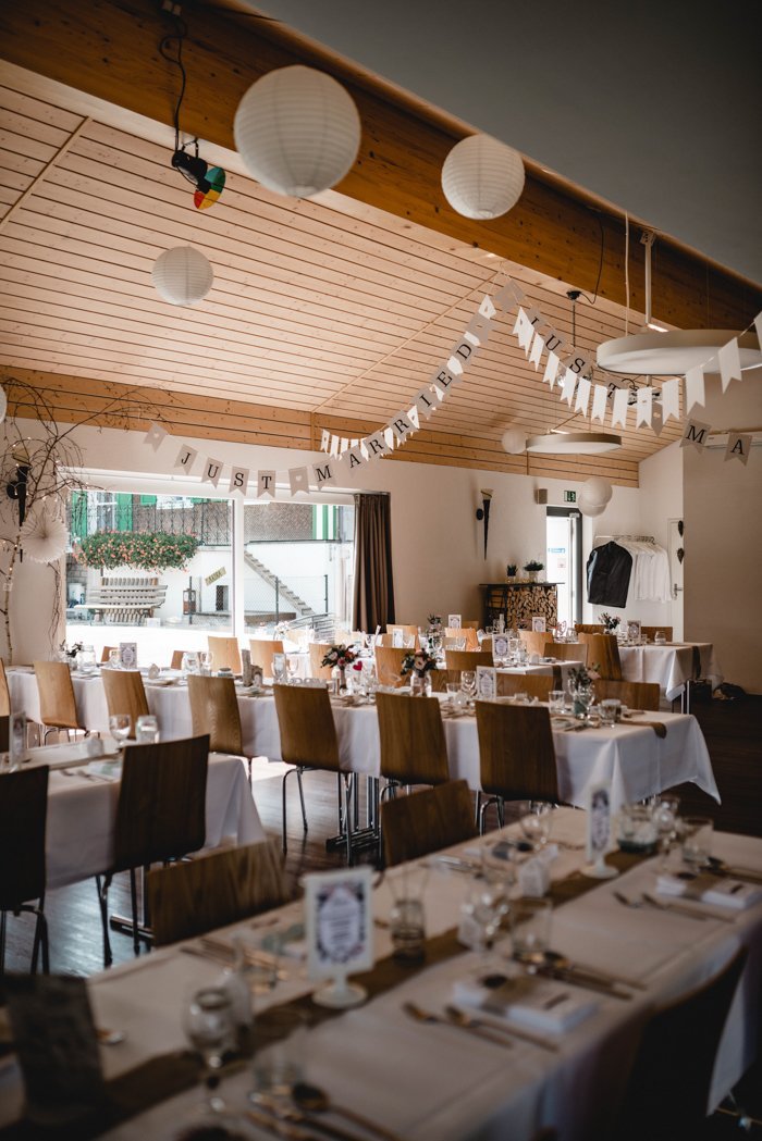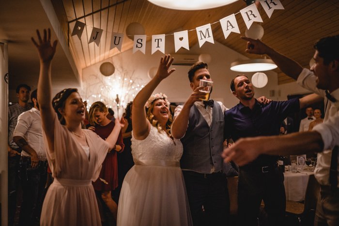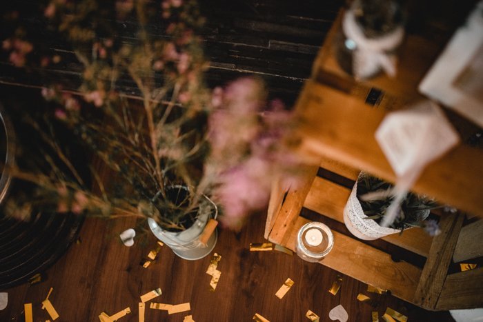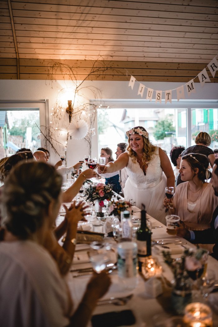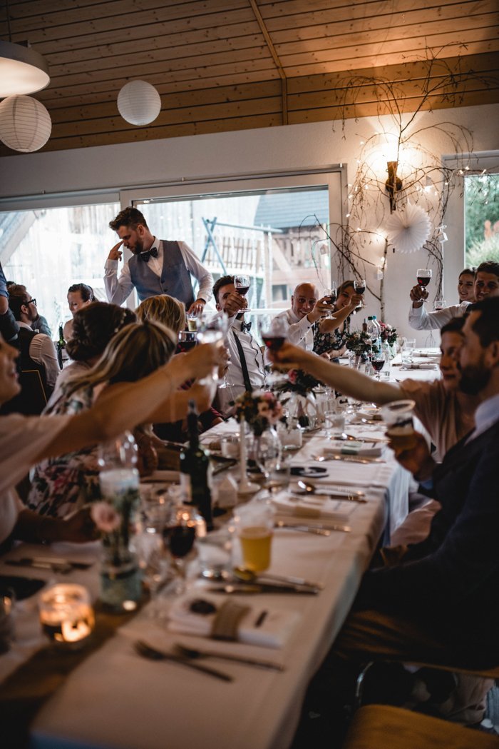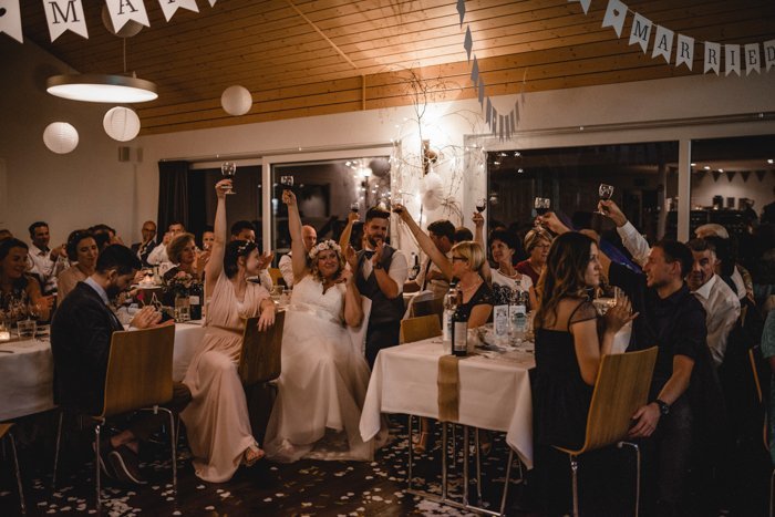 Als wir zu Location zurückkehrten und den Raum betraten, standen alle Gäste in einer Gasse geformt und haben uns mit Konfettibomben und dem Hochzeitsmarsch empfangen – ein super Starte in einen tollen Abend.