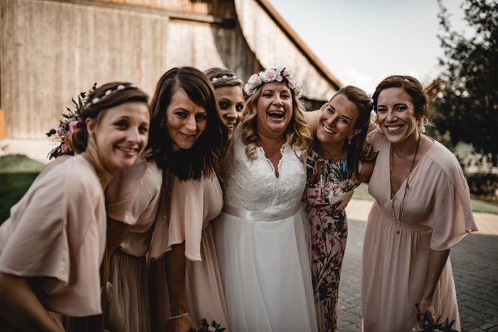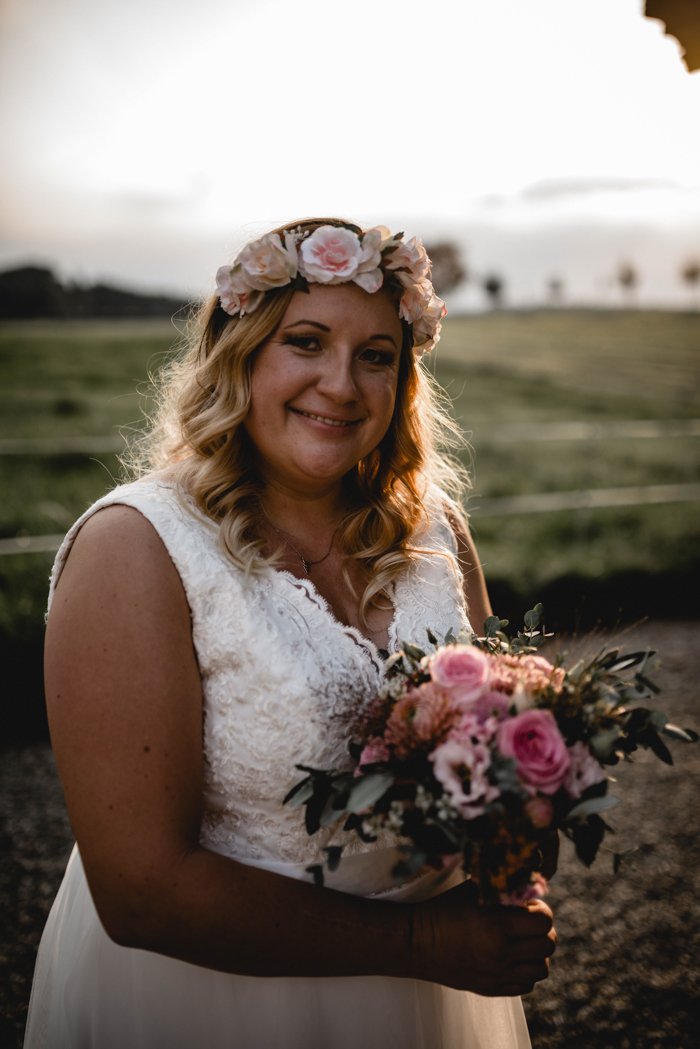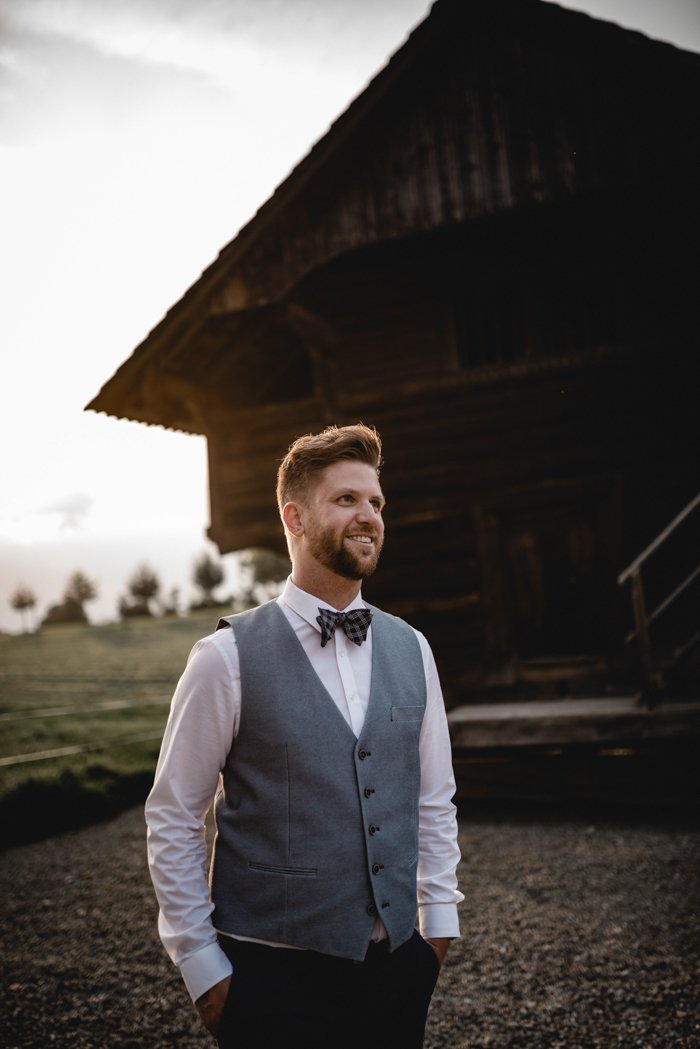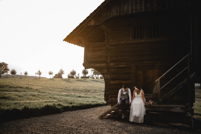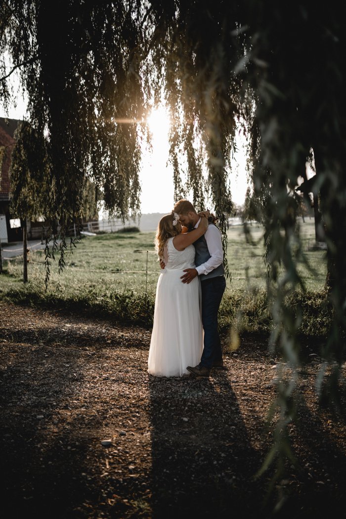Hochzeitsfotografin Stephanie Büchel schwärmte noch immer von der wunderschönen Abendstimmung und der ländlichen Gegend, die sich als irre fotogen für Paarfotos erwies.