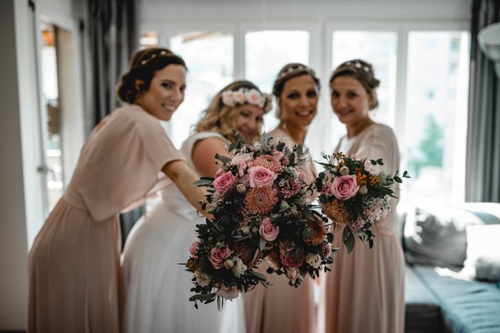 Einen Ort/Location zu finden, der sowohl bei guten als auch bei schlechtem Wetter geeignet war. Mir persönlich war wichtig, dass kleine Details stimmten. Notfallkörbli auf den Toiletten, passenden Musik zu den verschiedenen Abschnitten, die Kleider der Brautjungfern sowie der Trauzeugen mussten gleich sein und zu allen passen/stehen.