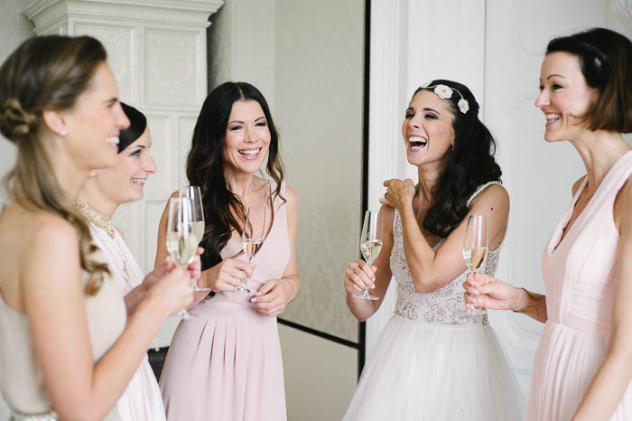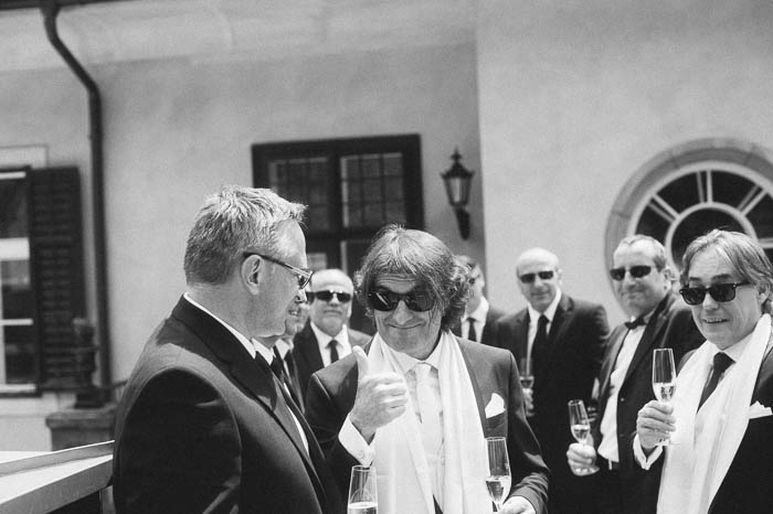 …während die Braut sich fertig macht ist der Bräutigam mit seinen Freunden bereits eingetroffen und stosst auf einen tollen Tag an.