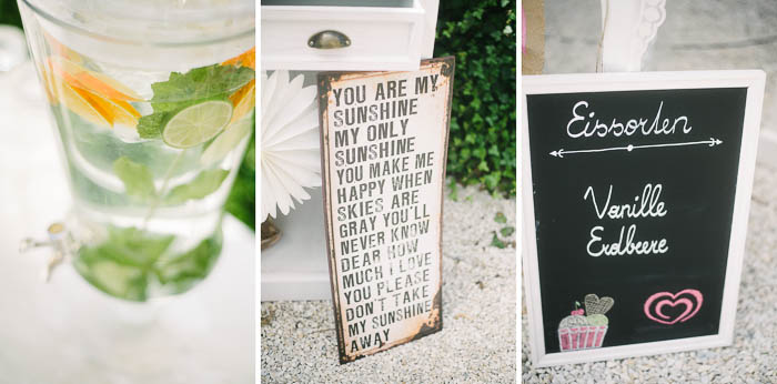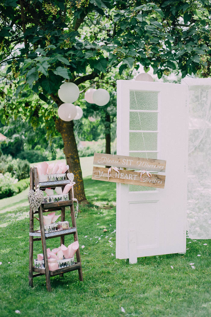 Zum Shabby Chic Stil gehören viele alte Schilder, die man mit viel Glück wirklich Vintage auf dem Flohmarkt findet oder aber fake-alt bei diversen Shops wie Depot, Interio, Nanu Nana, Maisons du monde etc… Selbst bemalte Tafeln schmücken eine jede Candy Bar zusätzlich.