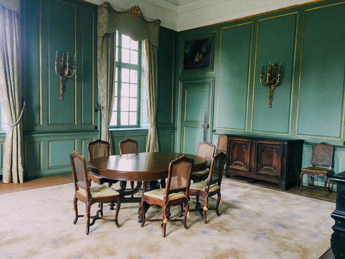 Der Gartensaal bietet ca 60 Personen Platz. In Kombination mit dem roten und grünen Salon haben sogar 114 Personen Platz.