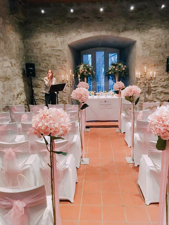 Fazit: Das Schloss Wartensee ist besonders geeignet für eine elegante Schlosshochzeit. Das Dekor im Haus und die majestätische Lage hoch über dem Bodensee sind eine gute Voraussetzung für ein schönes Hochzeitswochenende. Bevorzugte Hochzeitsdeko elegant – klassich. Das Schloss ist nicht geeignet als Boho oder Vintage Wedding Location. Wer seinen Princess Wedding Traum erleben will, ist hier richtig aufgehoben. Die Wände sind neutral gehalten und man kann mit so ziemlich jeder Farbe gut arbeiten. Von pastelligem Peach bis kräftigem Magenta ist hier alles möglich. Lasst eurer Fantasie freien Lauf.