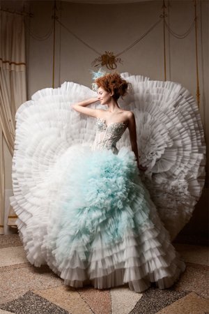 Weitere Brautkleider von Emiliano Bengasi findet ihr in diesem Beitrag. Der italienische Modeschöpfer bringt Mädchenträume aufs Papier und schliesslich auf den Körper. ♥