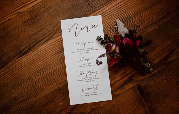 Als hübsches Highlight in jeder Hochzeitspapeterie sind die eigenen Worte kalligrafisch festgehalten. So behält ihr das in lebendiger Erinnerung und habt für viele Jahre noch etwas in Händen. Wir finden; ein Must have!