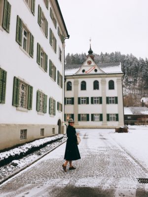 Mein erster Besuch im Kloster Fischingen und zur Begrüssung gibt es frischen Schnee. Wie romantisch. Es ist klirrend kalt und die Landschaft ist in eine weisse Decke eingehüllt. Ich finde Winterhochzeiten einfach wild romantisch  und noch dazu in einer wie von Staubzucker bedeckten Landschaft. Einfach hinreissend. Überhaupt muss mehr im Winter geheiratet werden. Was meint ihr dazu? Stellt euch bloss vor: