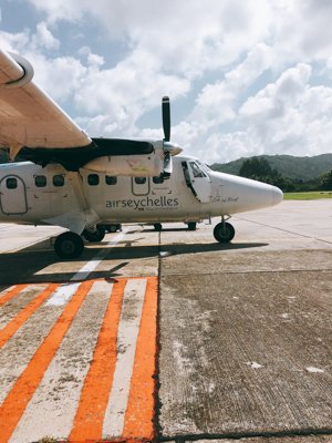 Die Anreise ist wunderschön. In einer De Havilland Maschine für 20 Personen hat man ein unvergessliches Erlebnis, wenn man von Mahé nach Praslin fliegt. Bei schönem Wetter hat man eine herrliche Aussicht auf das türkisblaue Meer und die üppige Vegetation.