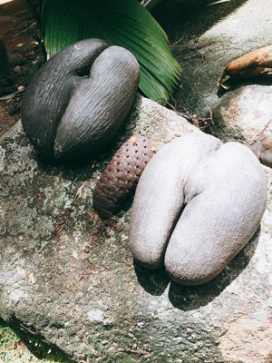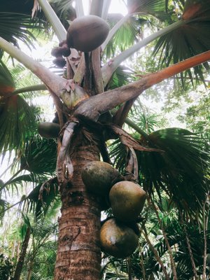 Ich empfehle den Besuch im Fond Ferdinand, weil die Kokosnüsse viel besser zu sehen sind, da die Bäume auf Hügeln und Tälern wachsen und ihr so auch an einige recht nah kommt. Im Vallée de Mai seid ihr in den Bergen und die Nüsse ragen hoch über euch hinaus. Ausserdem gibt es stündlich Führungen von Locals, die sehr interessant sind.