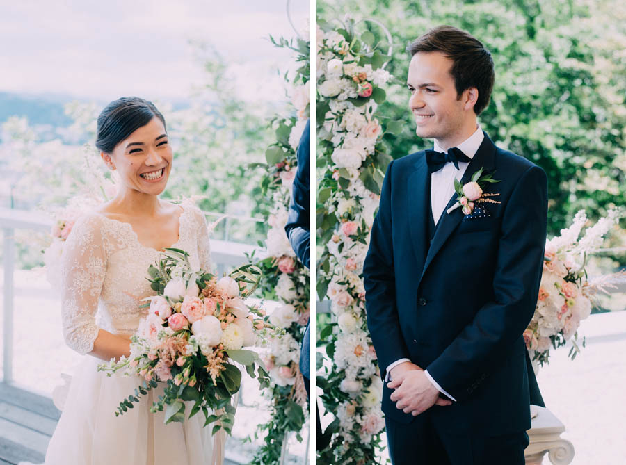 In der Skybar erwartete uns auch schon das wundervolle Setup. Blumendekoration von Div Art Flowers wie immer einfach märchenhaft schön. Die Trauung wurde in amerikanischem Stil geplant bei dem das Brautpaar steht und nicht wie in Österreich üblich sitzt. Für mich als Fotografin ist das natürlich toll, denn die Bilder werden so viel vorteilhafter. Nur so als kleiner Tipp am Rande, falls ihr auch so eine Hochzeit machen wollt.