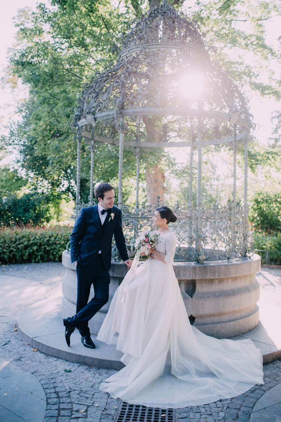 Bevor es zum Dinner geht, entführe ich mein Brautpaar dann noch zum Paarshooting. Nur wir 3 im sanften Abendlicht. Noch ein Tipp für eure Planung. Bevor ihr den Ablauf finalisiert habt, besprecht ihn mit eurem Fotografen/in. Er/sie wird bestimmt eine Meinung dazu haben. Ich bevorzuge meine Paarshots immer in den frühen Morgen oder Abendstunden. Kommt natürlich auf die Jahreszeit an aber grundsätzlich fotografiert man, wenn das Licht sanft und malerisch ist. Ausser es regnet, dann ist es ganztags gut ;)