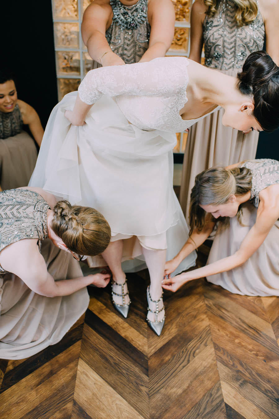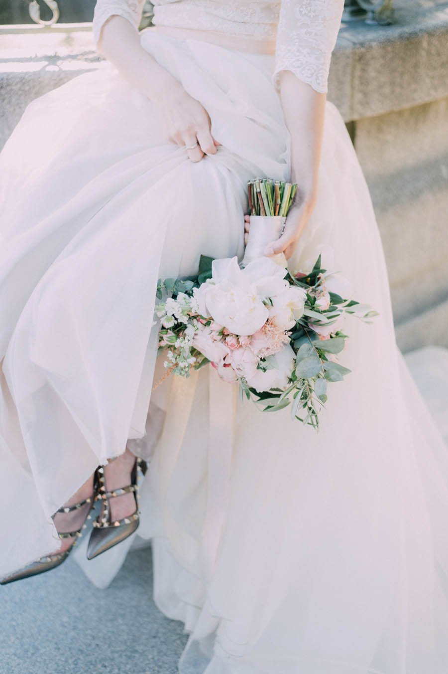 Lass dich nicht von diversen „Braut“schuhlabels verführen, die einfach nur weisse Schuhe anbieten. Kein Mensch sagt, dass du einen weissen Schuh anziehen musst. Investiere lieber in einen Qualitätsschuh oder einen Designerschuh, in den du dich verliebt hast und wo du weisst, dass du ihn immer wieder tragen wirst. Steffi hat sich für eine Valentino Stud entschieden.