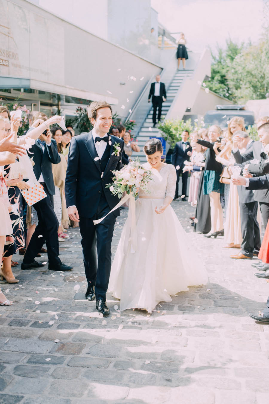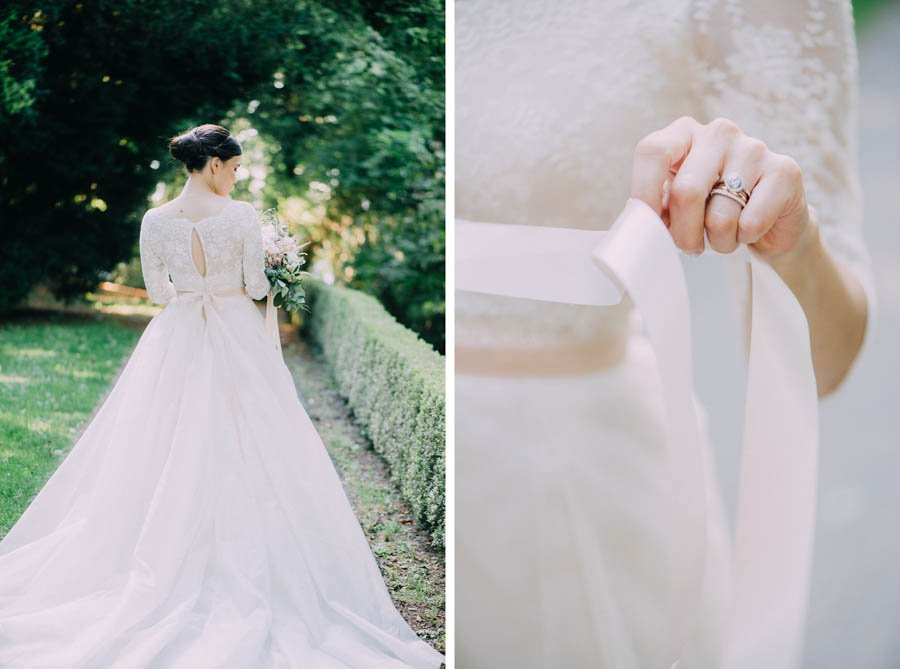 Steffi hat sich beim Brautkleid für Elfenkleid entschieden. Das deutsche Brautlabel kreiert individuelle Kleider aus traumhafter Seide und Steffi musste zwei Mal zur Anprobe von London nach München fliegen. Es nimmt Zeit in Anspruch aber dafür ist es auch auf dich und deinen Körper geschneidert und sitzt perfekt.