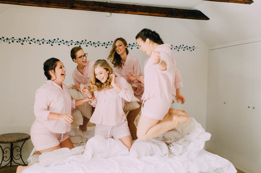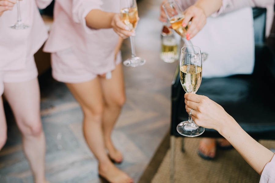 Das Getting Ready mit Sfumato Makeup fand im Hotel Weitzer statt. Zum Auftakt haben sich die Brautjungfern ein Gläschen Champagner gegönnt und die Geschenke der Braut aufgemacht.