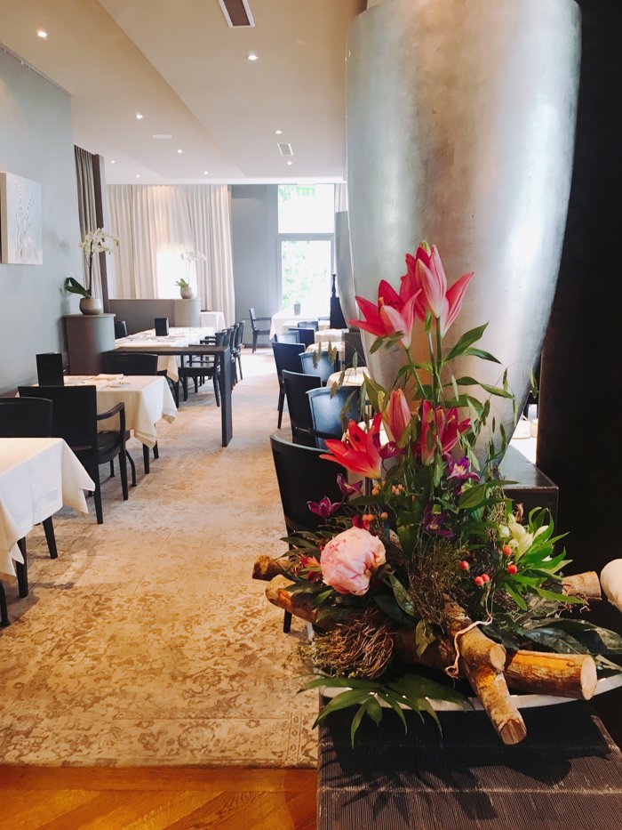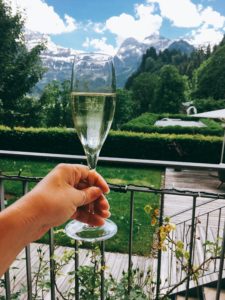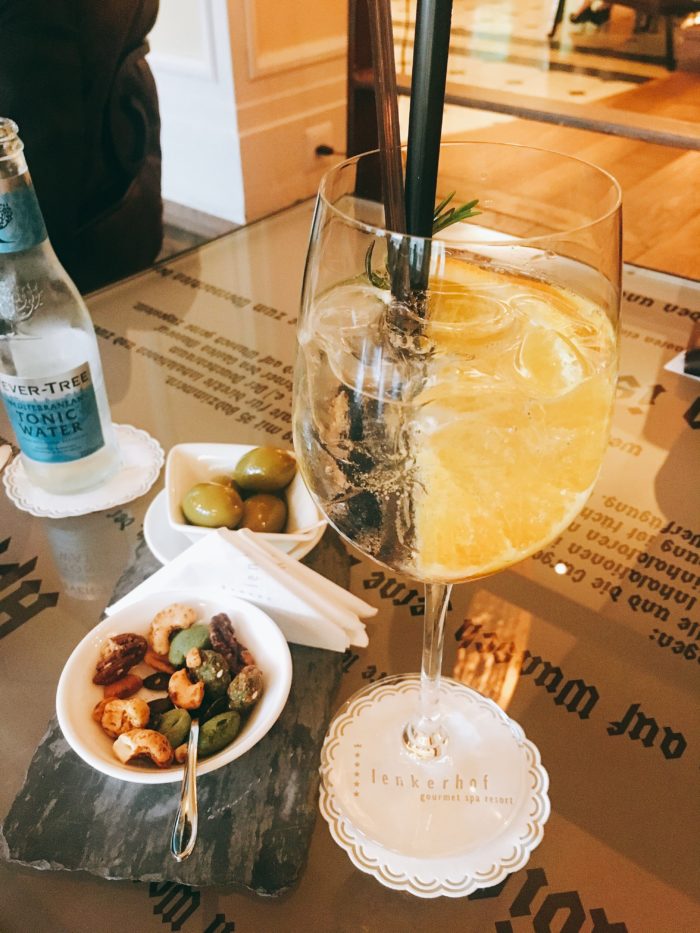 Wie kann ich euch nur die kitschige Kulisse beschreiben? Ich bin keine Rosamunde Pilcher aber so ungefähr spielte sich die Szene ab. Bei angenehmen 23 Grad und einer sanften Brise haben wir auf der Terrasse einen Platz im Schatten gefunden. Die fluffigen Wolken zogen gemütlich über den Sommerhimmel. Während die Vögel um die Wette zwitscherten und der Springbrunnen mit seinem leisen Plätschern dieses Konzert untermalte, genossen wir ein Glas Prosecco. Ein Pulitzer wird’s wohl nicht werden aber ihr könnt euch wenigstens ein ungefähres Bild ausmalen.