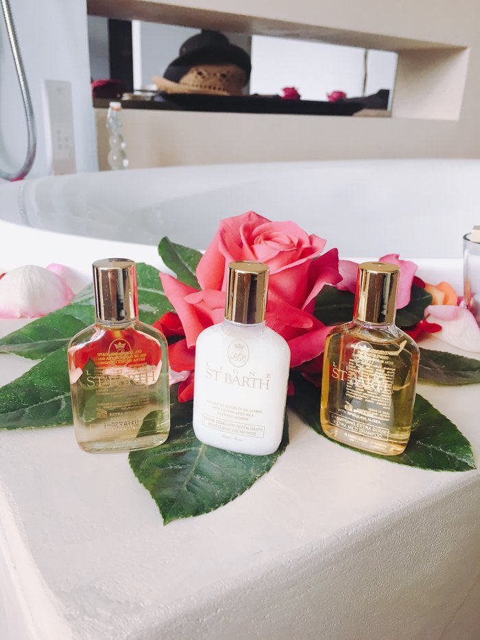 Eines der ganz grossen Vorteile der Suite: Sie hat eine riesige Badewanne und eine Dampfdusche. Ich kann euch gar nicht oft genug betonen wie absolut genial eine Dampfdusche ist. Soetwas sollte man zu Hause auch haben. Nun ja, träumen darf man noch. Zu meiner grossen Überraschung gab es auch Kosmetikprodukte aus meiner alten Heimat: St Barthélemy in den französischen Antillen. Ich bin zwar vor 15 Jahren weggezogen aber ich habe den Duft von Tiaré Öl noch in meiner Nase. Hier erfährt ihr mehr über Honeymooning auf St Barth.