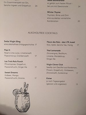 Ja es stimmt die Drinks kommen nicht billig aber wie oft gönnt man sich schon ein romantic getaway oder einen Mini Moon? Eben! Also ich kann nur wärmstens empfehlen: Old Fashioned – ein Klassiker unter den Rum Cocktails und einfach nur lecker! Wirklich jeden Rappen wert! Wer Rum liebt, kommt hier sowieso ganz auf seine Kosten. Die Rumkarte umfasst 13 Seiten. Der alkoholfreie LTR Punch war ok aber nicht sprudelig genug für mich.