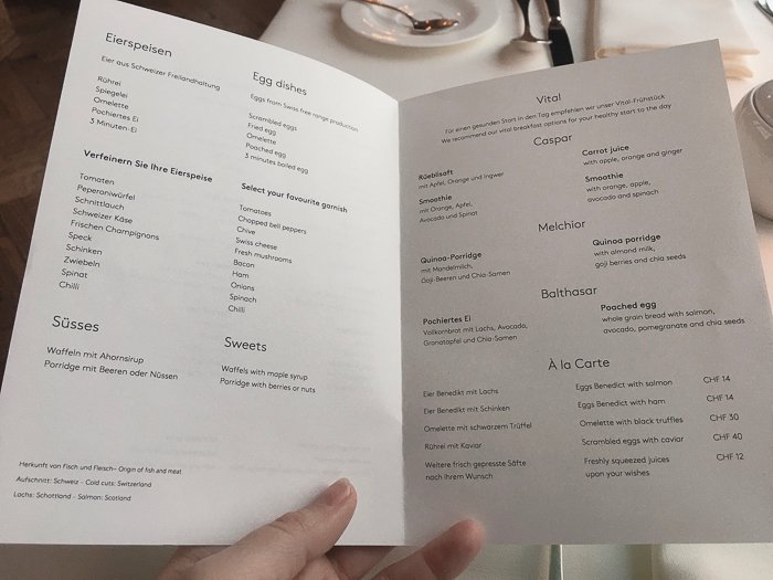 Von der Frühstückskarte kann man ausserdem noch diverse Eierspeisen bestellen.