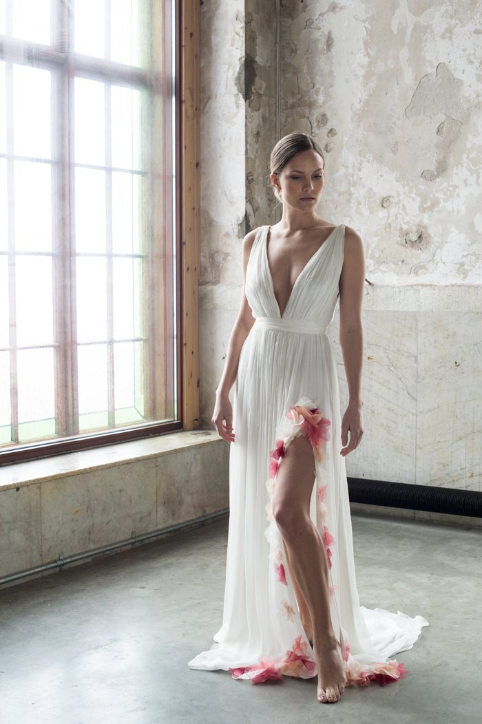 Die Kleider spiegeln einen romantisch-femininen Look wider und sind somit für eine Boho Hochzeit prädestiniert. ich war vorallem von den luftig-zarten Stoffe begeistert. Jedes ein filigranes Kunstwerk aus weich-fliessender Seide und auf der Haut fühlt es sich einfach traumhaft an.
