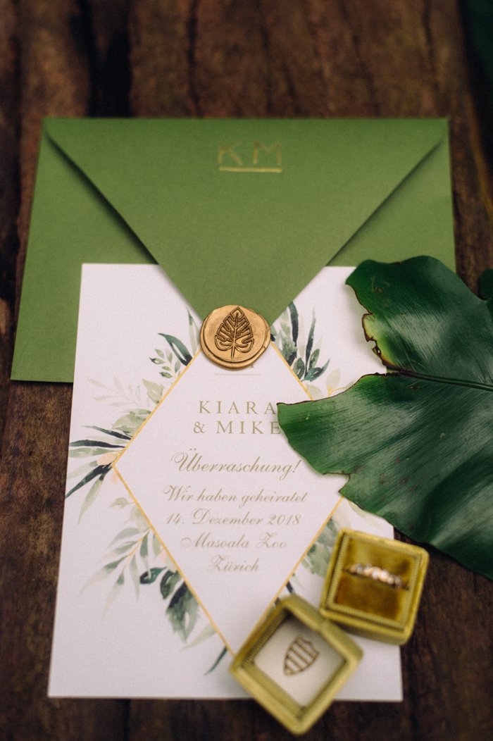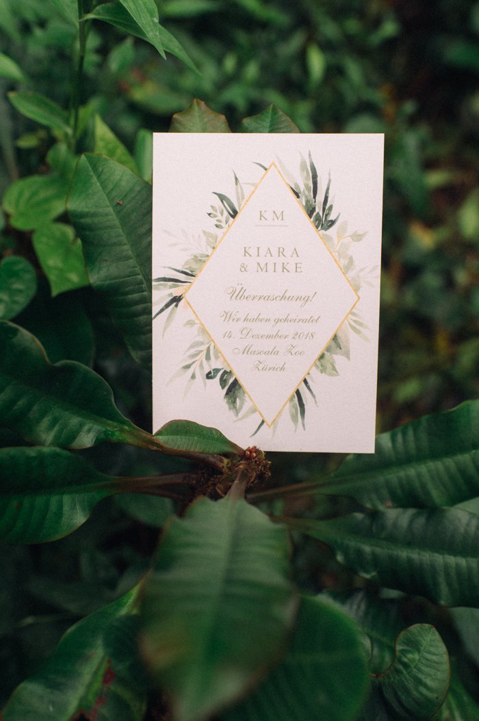 Seid ihr auch für eine Überraschung gut? Heiraten nur mit Trauzeugen ganz ohne Familie und Stress? Das geht auch. Nach eurer Trauung im Masoala Regenwald bekommt ihr eine einstündige Führung durch den Regenwald. Das ist der ideale Ort, um mit eurem Hochzeitsfotografen ein paar originelle Hochzeitsfotos zu machen.