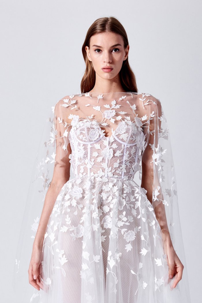 Ein Highlight der Bridal Shows auf alle Fälle und mein persönlicher Favorit ist das Bustierkleid. Die 3D Blumenapplikationen sowie das netzige Oberteil sind einfach genial!