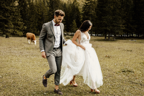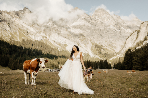 Packt eure Wanderschuhe ein und das Hochzeitsgewand sowieso und raus aufs Land. Fotografin Cecilia Hofer ist zusammen mit Priscilla & Jerome in die Schweizer Alpen gewandert. Inmitten dieser kitschig-romantischen Kulisse sind wunderschöne Erinnerungen entstanden.