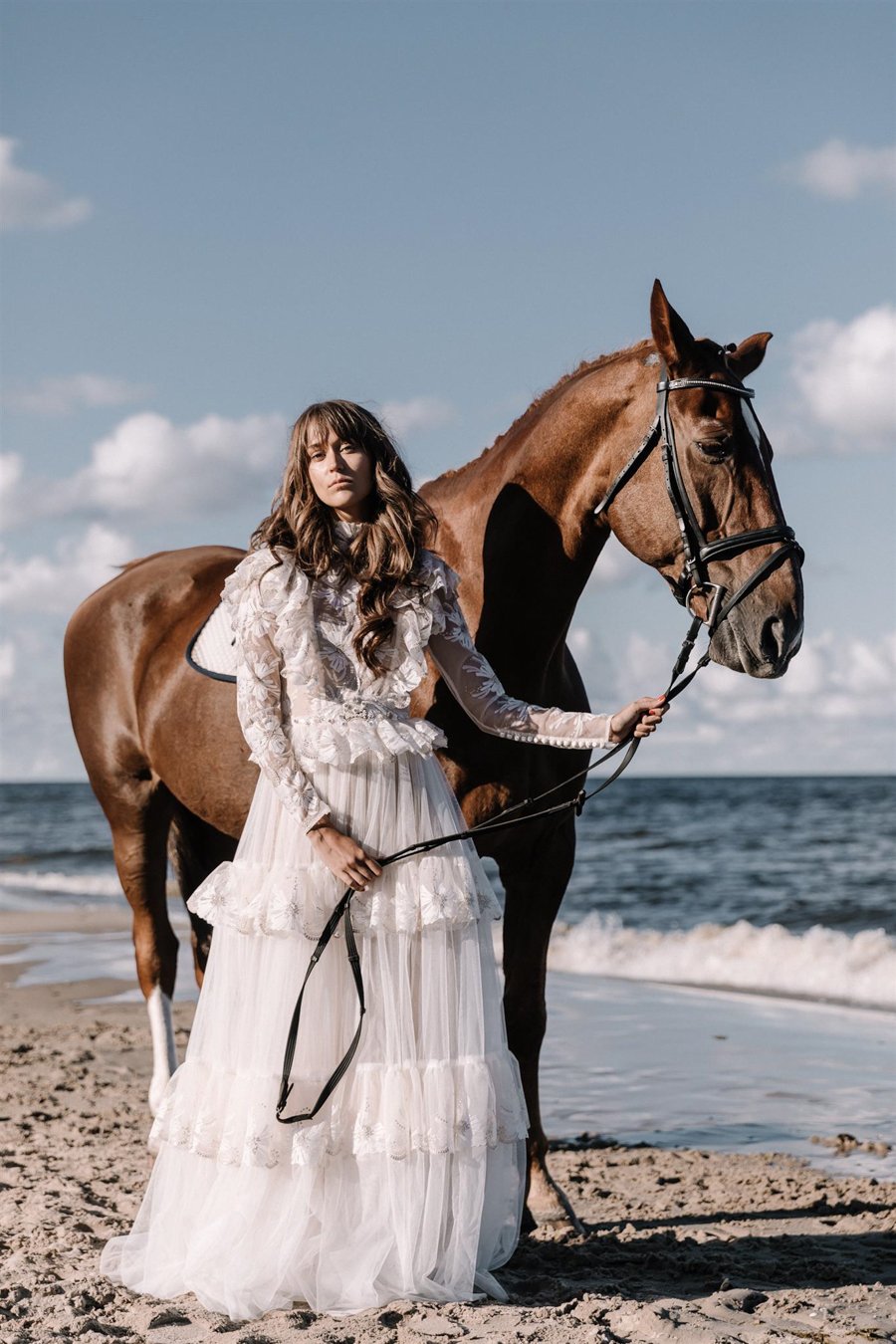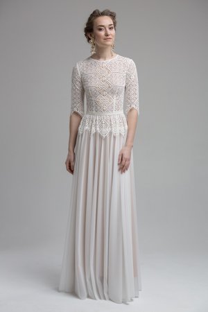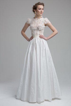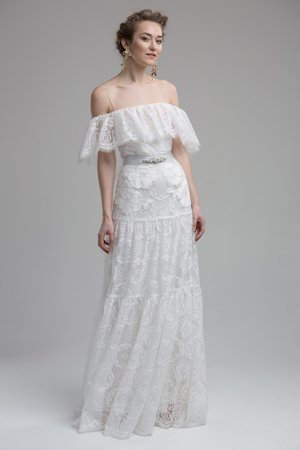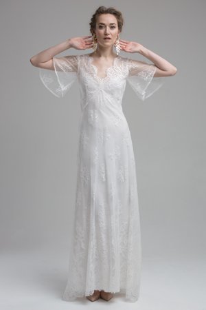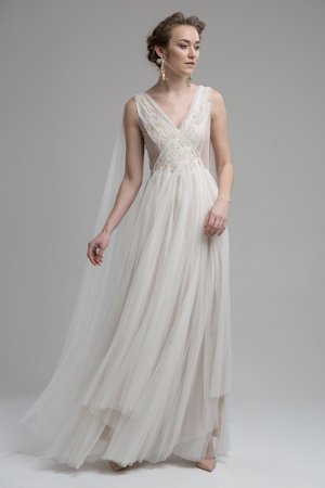 Elfenhaft und zart sind die Designs von Katya Shehurina. Ich habe das Gefühl sie hat Träume eingefangen und zu Papier bzw Stoff gemacht. Rüschen und Spitze wohin das Auge blickt. Alles fliessend. Alles anschmiegsam. Wie Katya mir persönlich verraten hat, verwendet sie keine Mieder, keine einzwängenden Bustiers & Co. Ihre Bräute sollen atmen, tanzen, singen können.