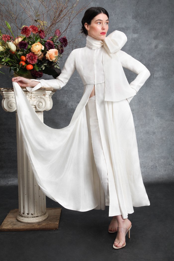 Die Debut Brautkollektion von Sahroo besteht aus verschiedenen Zwei- & Dreiteilern. Hose oder Rock mit einem passenden Oberteil und abschliessend einem Kaftan oder Blazer. Die Hosen stehen in weit ausgestellt oder slim fit zur Auswahl. Für die legere Strandhochzeit gibt es auch die Bermuda Shorts, die wirklich sehr hip und stylish sind. Jedes Teil ist handgefertigt und wird innerhalb von 7-10 Tagen hergestellt.