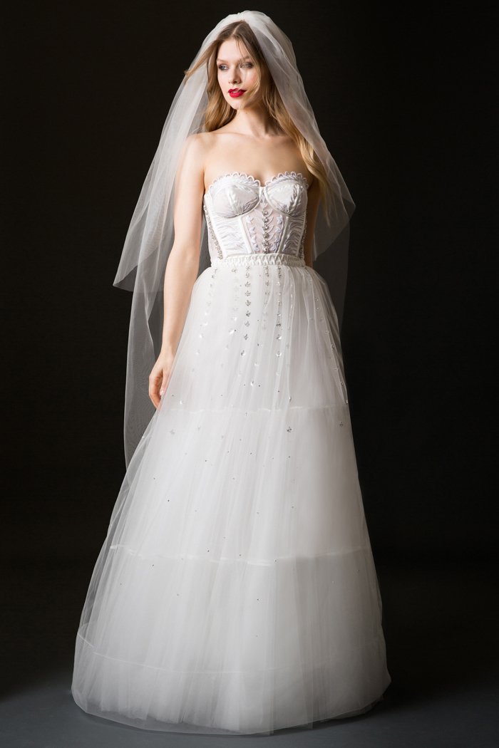 Temperley ist seit jeher bekannt für ihre aufwändig bestickten Kleider und das Toledo Dress eines ihrer Klassiker. Dieses findet sich neu interpretiert auch in der neuen Brautkollektion wieder. Ich traue mich zu wetten, dass es bei Bohobräuten sehr gut ankommen wird.