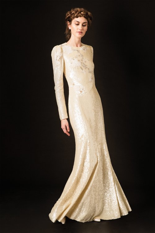 Temperley London hat mich mit der 2019er Kollektion überrascht und sehr erfreut. Die diesjährige Brautkollektion ist wieder eine Hommage an die feenhafte Braut, die einen Hauch viktorianisches Flair mit sich bringt. Typisch für Temperley sind die fliessenden Stoffe, die glitzernden Strassapplikationen und die manchmal an eine griechische Göttin erinnernde Silhouetten.