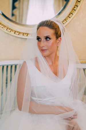 Eine moderne Variante einen Schleier zu tragen, wäre ein Schleiercape. Es bedeckt in der Kirche grosszügige Dekoltées und kann später für das Paarshooting am Kopf befestigt werden.