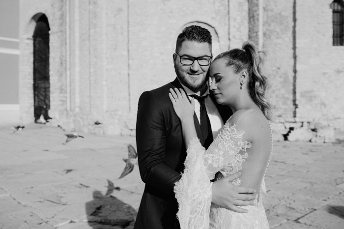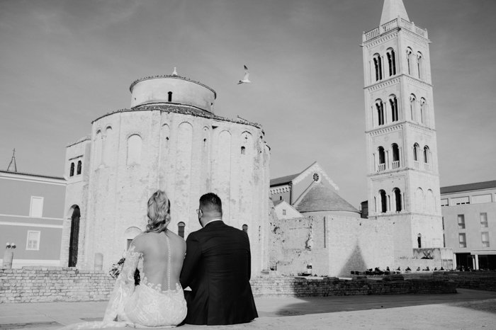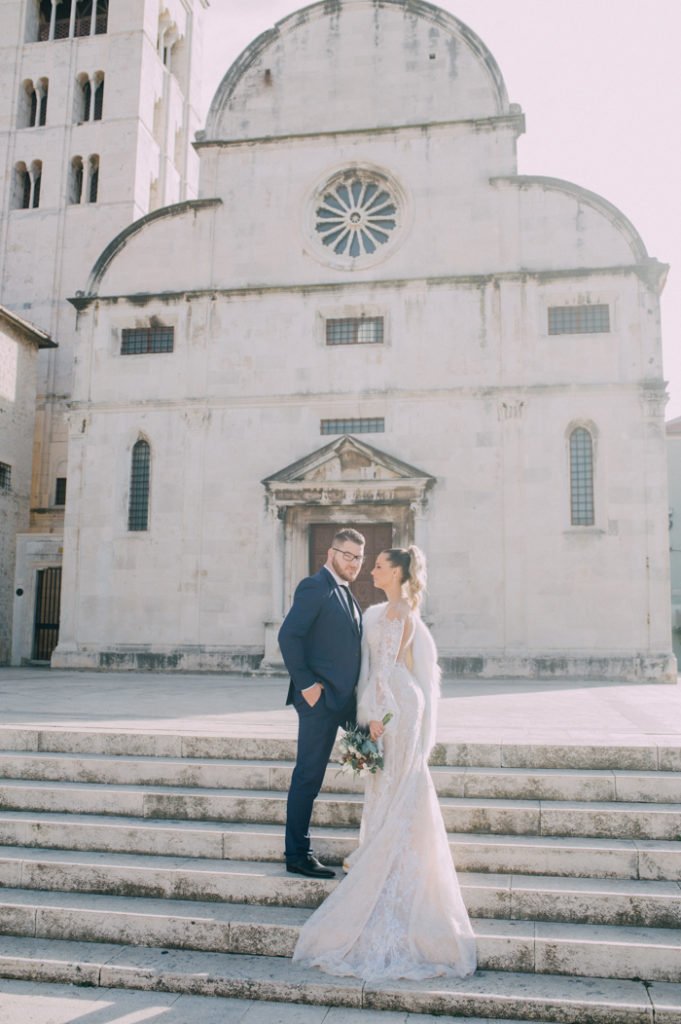 Nicht nur in Venedig und Paris auch in Zadar tummeln sich Tauben rund um die schönsten Gebäude und bieten jedem Fotografen tolle Motive sofern man schnell genug ist. Leider habe ich diesmal vergessen altes Brot mitzubringen, sonst hätten sie uns aus den Händen gefressen und sich schön ums Brautpaar formiert aber naja man kann nicht alles haben.