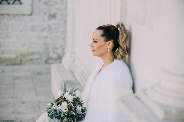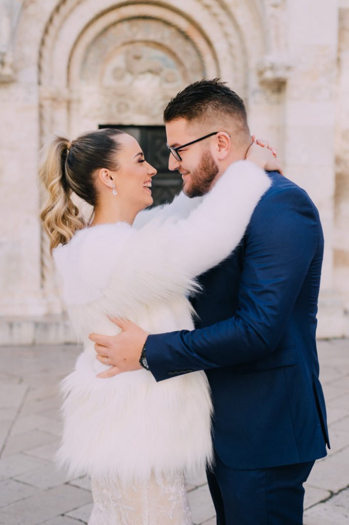 Jetzt sind 15 Grad nicht vielleicht klirrende Kält aber trotzdem ist es doch ganz frisch. Deshalb solltest du dich auf alle Fälle um eine hübsche Jacke, Stola, Umhang umsehen, damit dir nicht kalt wird und du aber trotzdem hübsch auf den Fotos posen kannst. Diese Faux Fur Jacke ist von Zara und war flauschig warm und fotogen. Auf alle Fälle machen lange Ärmel im Winter Sinn auch wenn sie dir nicht wirklichen Schutz vor Kälte bieten. Dieses Justin Alexander Brautkleid hat Glockenärmel und ist dicht bestickt. Der Rücken ist aus transparentem Tüll.