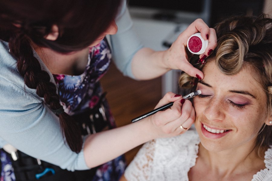 An meiner eigenen Hochzeit bin ich in der Früh zum Friseur. Der erste Termin war erst um 8 Uhr. Ich musste ewig unter der Trockenhaube warten und bis ich endlich fertig war, musste ich wieder schnell nach Hause, mich schminken und anziehen. Das war purer Stress. Diese Erfahrung möchte  ich anderen Bräuten ersparen.