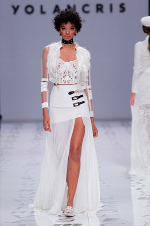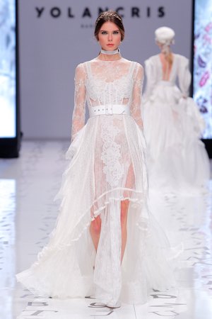 Die Modenschauen von YolanCris sind immer ein Fest für alle Sinne. So wie schon auf der Barcelona Bridal Fashion Week 2018 als es einen Open Air Catwalk gab, der auch ein Rock Konzert hätte sein können.